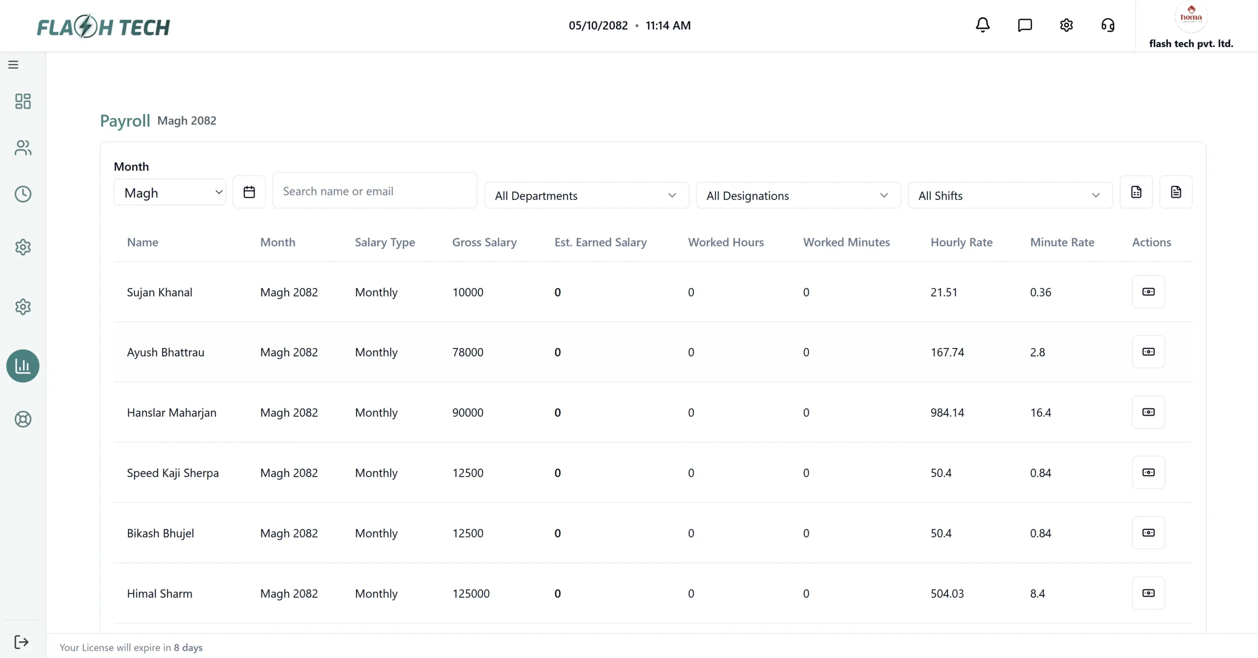 • Payroll reports (Monthly / Hourly / Minute-based)